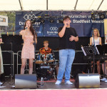 Das Trompetenensemble spielte am Samstag gegen 14.20 Uhr erfrischend und strahlend ihre Darbietungen unter der Leitung von Corinna Hoefeld-Jacobsen und wurden anschliessend von unserem Pop Music Ensemble unter der Leitung von Juliana Blumenschein auf der Bühne am Marktplatz abgelöst. So verschieden Musik wahrgenommen wird, so unterschiedlich sind die Ausbildungsmöglichkeiten an der Musikschule Südliche Bergstraße – so vielseitig sind unsere Ensembles.