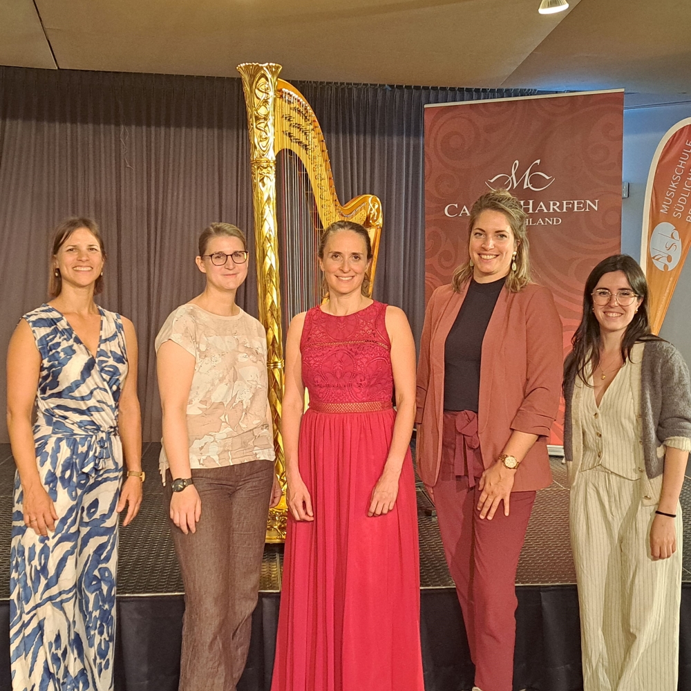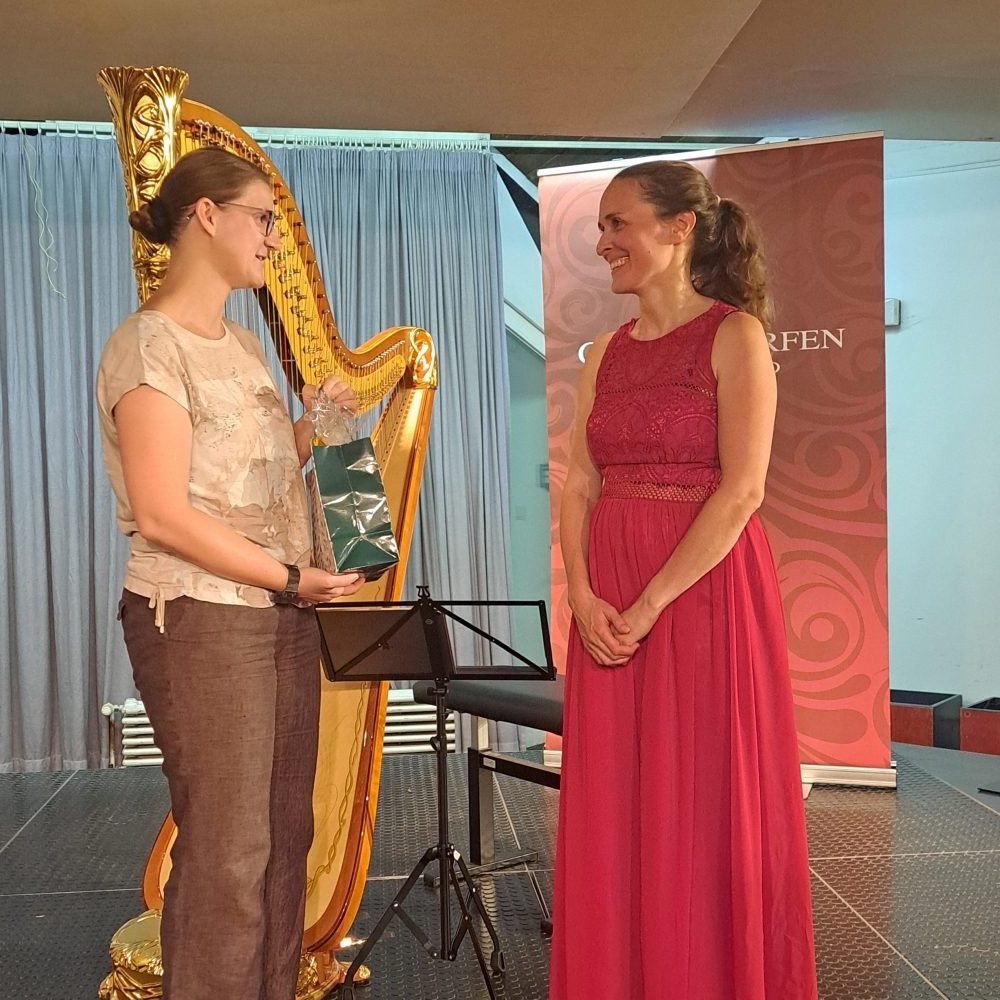 Ein besonderer Höhepunkt war der Meisterkurs mit der Harfenistin Antonia Schreiber, an dem Schülerinnen aller Altersgruppen teilnahmen. Mit neuen Impulsen zu Haltung, Klanggestaltung und Technik bereichert, ging es am Abend in ein festliches Konzert über. Dort präsentierte Antonia Schreiber mit fantasievollen, rhythmischen, adaptierten und originalen Kompositionen eindrucksvoll die Klangfarben der Harfe – und entließ ein begeistertes Publikum in die laue Sommernacht.
