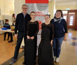 Gleich nach dem Wettbewerb hatte das Cello-Trio die Gedenkveranstaltung für die Opfer des Nationalsozialismus am 27.Januar in der Evangelischen Stadtkirche in Wiesloch mit würdiger und stimmungsvoller Musik umrahmt.