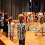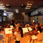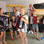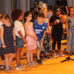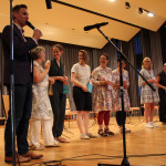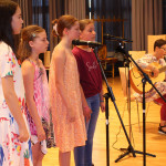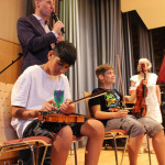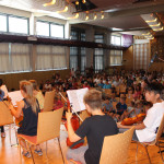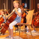 Unter der Schirmherrschaft von Bürgermeister Joachim Förster, der die Gäste in der sehr gut besuchten Festhalle freudig begrüßte, musizierten, sangen und tanzten die „musikalischen Glücksbringer“: Kinder aus verschiedenen Kooperationen und Ensembles der Musikschule aus den Zweckverbandsgemeinden. Moderiert von Brigitte Becker waren das Kinderorchester unter der Leitung von Maria Köhnke mit kleinen Stücken vertreten, wie auch die MBS Kinder aus den Klassen der Pestalozzischule-Grundschule Baiertal und der Lindenschule Nußloch unter der Leitung von Ulrike Piro und Annette Blatz-Braun mit Liedern und Tänzen. Der Projektchor bestehend aus dem Vocalensemble der Frauenweiler Grundschule und GesangsschülerInnen der Klasse Susanne Piro sang bekannte Kinderlieder, von ihrer Gesangslehrerin auf der Gitarre begleitet. Im weiteren Programmverlauf waren junge KlavierschülerInnen der Klasse Brigitte Becker abwechselnd mit Gesangschülerinnen der Klasse Susanne Piro zu hören, die ebenfalls kleine feine Kinderstücke vortrugen. Den Abschluss des lebhaften und beschwingten Musikvormittags machte das noch junge Akkordeonorchester der Klasse von Nadine Bösing.
