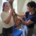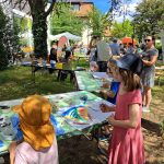 Wiesloch. (hds) Der traditionale „Tag der Instrumente“ bei der Musikschule Südliche Bergstraße wurde in diesem Jahr erweitert und erhielt eine neue Überschrift: „Kinderkulturfest – Kommen-Hören-Sehen-Probieren“. Mit eingebunden waren außerdem die Stadtbibliothek und die Kinderkunstschule (KIKUSCH). Los ging es bei hochsommerlichen Temperaturen in der Amarante-Anlege mit dem Auftritt eines Mitmachorchesters, um den zahlreichen Gästen akustisch das Zusammenspiel unterschiedlicher Instrumente aufzuzeigen. Vor allem Eltern mit ihrem erwartungsvollen Nachwuchs waren gekommen, um mal in das umfangreiche Angebot der Musikschule zu schauen. „Wir haben wegen der Hitze eigens ein Sonnensegel aufgestellt, um das Orchester einigermaßen zu schützten“, so Nadine Bösing, die im September des Vorjahres die Leitung der Musikschule übernommen hatte. Nach dem Aufspielen ging es dann in die benachbarte Villa und in die oberen Räume des Kulturhauses, dem Unterrichtsdomizil der Musikschule Südliche Bergstraße. Dort boten die Lehrerinnen und Lehrer der Einrichtung ein „Schnuppern“ an und zwar über eine Vielzahl von Instrumenten hinweg. Ob Harfe, Gitarre, Klavier, Trompete bis hin zum Klavier war alles vertreten. Selbst Popgesang und natürlich Schlagzeug wurden präsentiert. Information und selbst ausprobieren bestimmte das Geschehen in vielen Räumen. „Wir haben den „Tag der Instrumente“ bewusst ausgeweitet, um so unser gesamtes Spektrum besser vorstellen zu können“, erklärte Bösing. Es komme sogar hin und wieder vor, dass Kinder, die sich eigentlich im Vorfeld für ein bestimmtes Instrument entschieden hatten, nach den Vorführungen und Erläuterungen umgeschwenkt seien. „Wichtig ist auch: Wir haben mit fast allen Grundschulen in unserem Zuständigkeitsbereich Kooperationen, so beispielsweise mit der Merian-Grundschule in Wiesloch. Dort bieten wir unter anderem eine Bläserklasse an“, informierte Bösing. Seitens der Stadtbibliothek hatte man sich etwas Besonderes einfallen lassen. „Wir bieten heute spannende Geschichten mit dem Kamishibai an, einem alten, japanischen Erzähltheater. Dies besteht aus einem Holzrahmen, in den verschiedene Bilder eingeschoben werden“, so Claudia Kellner von der Stadtbibliothek. Dadurch würde die Sprache der Kinder und die kreativen Aktivitäten gefördert. Ergänzend bot die Kinderkunstschule mit Frau Senft-Rubarth an einer Malstation Mitmachmöglichkeiten zum freien Gestalten an. Dieses Angebot wurde ebenfalls sehr gut angenommen und es entstanden schöne Bilder mit und ohne Musik. Bei so viel Bewegung und Aktion wurde so Mancher hungrig und durstig. Der Verein der Eltern und Förderer der Musikschule versorgte die zahlreichen Gäste mit kühlenden Getränken, Kaffee und Kuchen. Das Fazit: Das Angebot, unter fachlicher Anleitung die unterschiedlichsten Instrumente auszuprobieren, um dann vielleicht später selbst in eine weiterführende Lernphase einzutreten, wurde bestens genutzt.