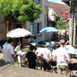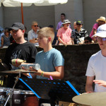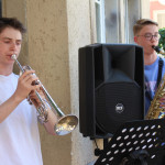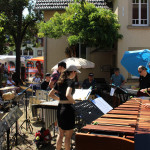Vergangenen Samstag waren die Schlagzeugensembles Rappelkiste und Sticktime unter der Leitung von Benjamin Wittiber im lauschigen Innenhof der Musikschule Walldorf zu hören. Entgegen allen Erwartungen haben doch viele Zuhörerinnen und Zuhörer den Besuch dieses beliebten Konzerts einem Freibadbesuch vorgezogen. Und so herrschte den ganzen Nachmittag über ein reges Kommen und Gehen, Füße wippen und Klatschen, ja sogar Tanzen bei den von den Ensembles gespielten Latin- und Poparrangements von u.a. Stevie Wonder, Earth Wind and Fire, Bruno Mars, Santana, Michael Jackson, Mongo Santamaria oder Tito Puente. Brigitte Becker hatte in bewährter Weise, diesmal mit Ihren “Co-Moderatoren” Youlin und Boas, durchs Programm geführt, sowie die Musik und die jungen Musiker vorgestellt.